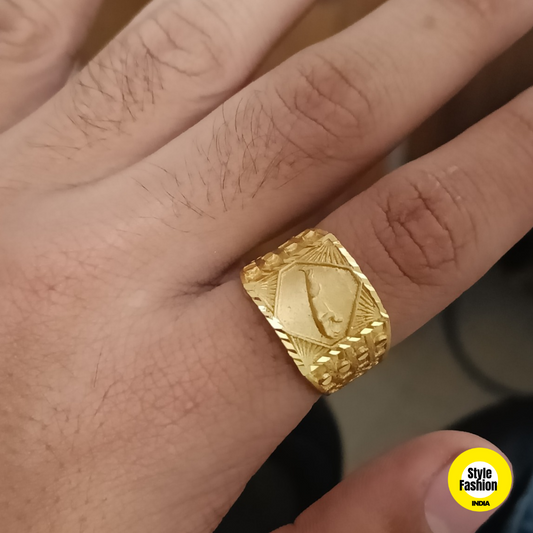 Exclusive Frill Handmade Charming Square Premium Gold Plated Ring For Men