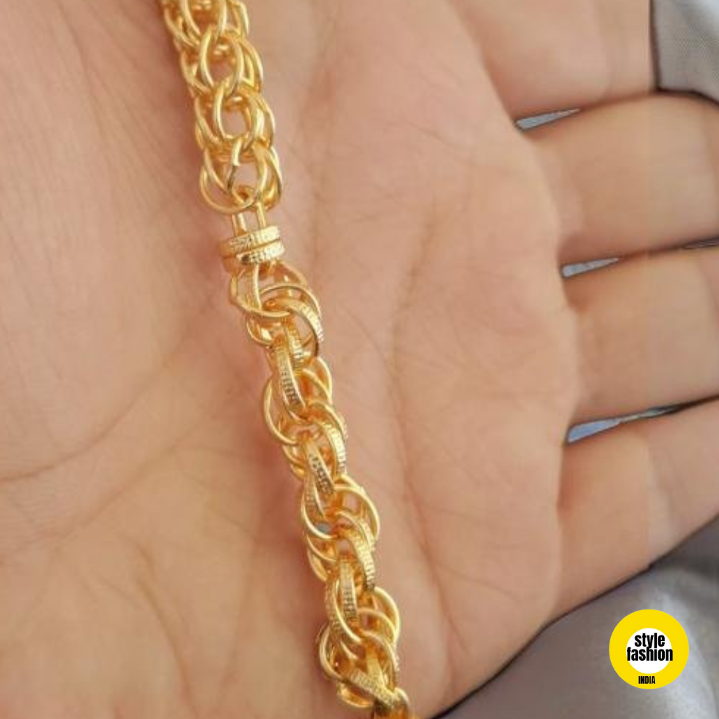 Introducing the 2-in-1 Bahubali with Ring on Ring Gold Plated Chain for men. This high-quality chain features a stunning golden color and a sleek design. Made from brass and gold plated, it offers a shining and textured surface finish. Perfect for festivals, weddings, birthdays, and as a thoughtful gift. Get ready to make a style statement with this Rajwadi brand chain. Package includes 1 chain.