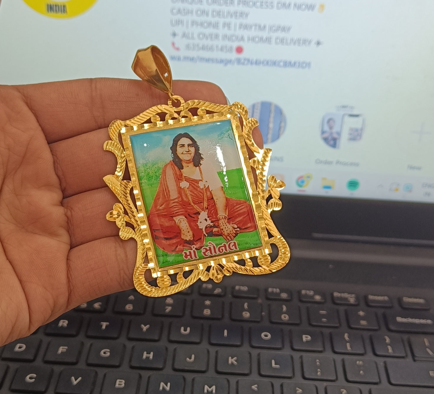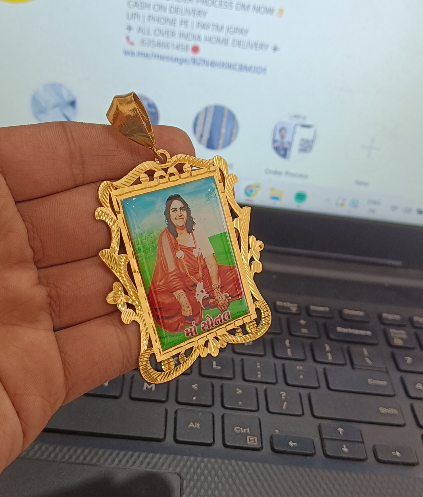 Jay Sonal Maa Photo High Quality Gold Plated Pendant
