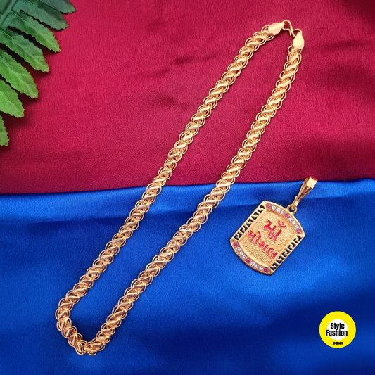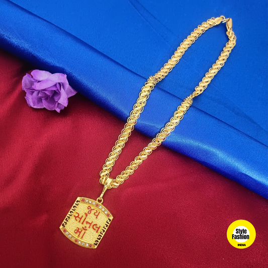 Jay Sonal Maa Logo Gold Pendant With Kohli Design Premium Gold Plated Chain For Men