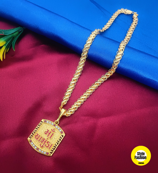 Jay Chamunda Logo Gold Pendant With Kohli Design Premium Gold Plated Chain For Men