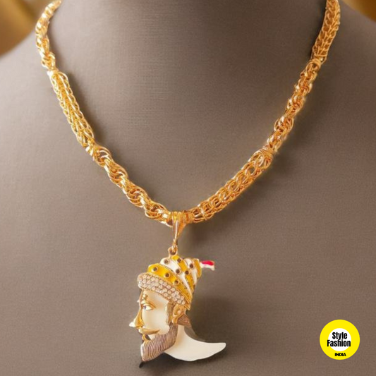 Chhatrapati Shivaji Maharaj With norr Pendant with Bahubali with Ring on Ring Gold Plated Chain For Men