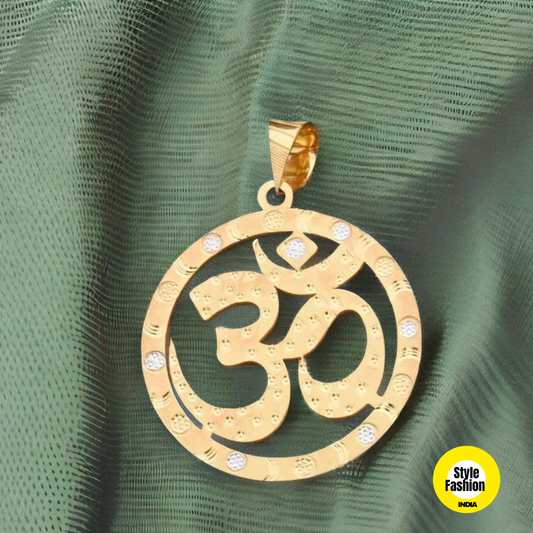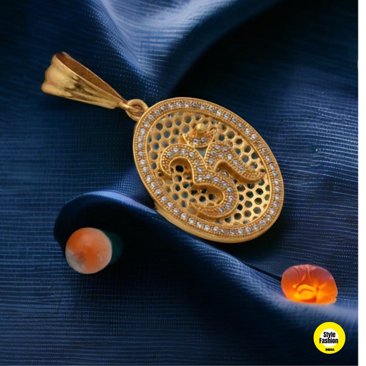 OM Diamond and Round Designer High Quality Gold Plated Pendant For Men