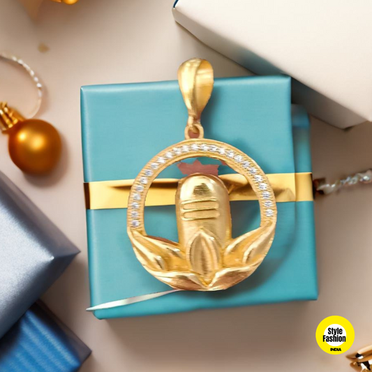 Shivling Unique Design With Diamond & Gold Plated Pendant For Men