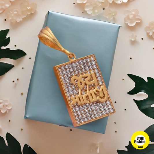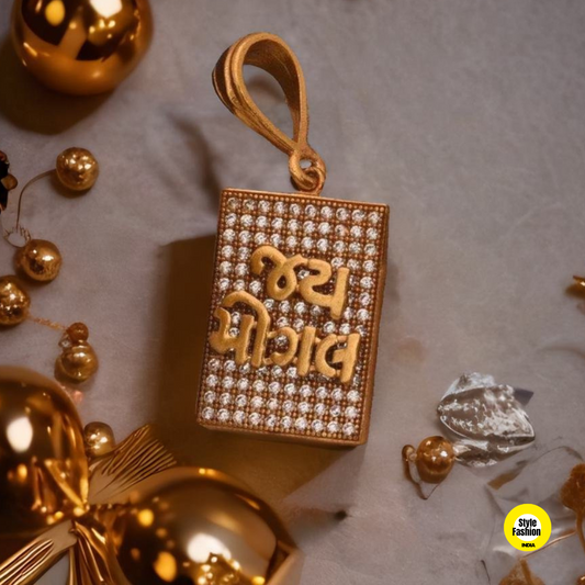 Jay Mataji Logo Square Design With Diamond & Gold Plated For Men