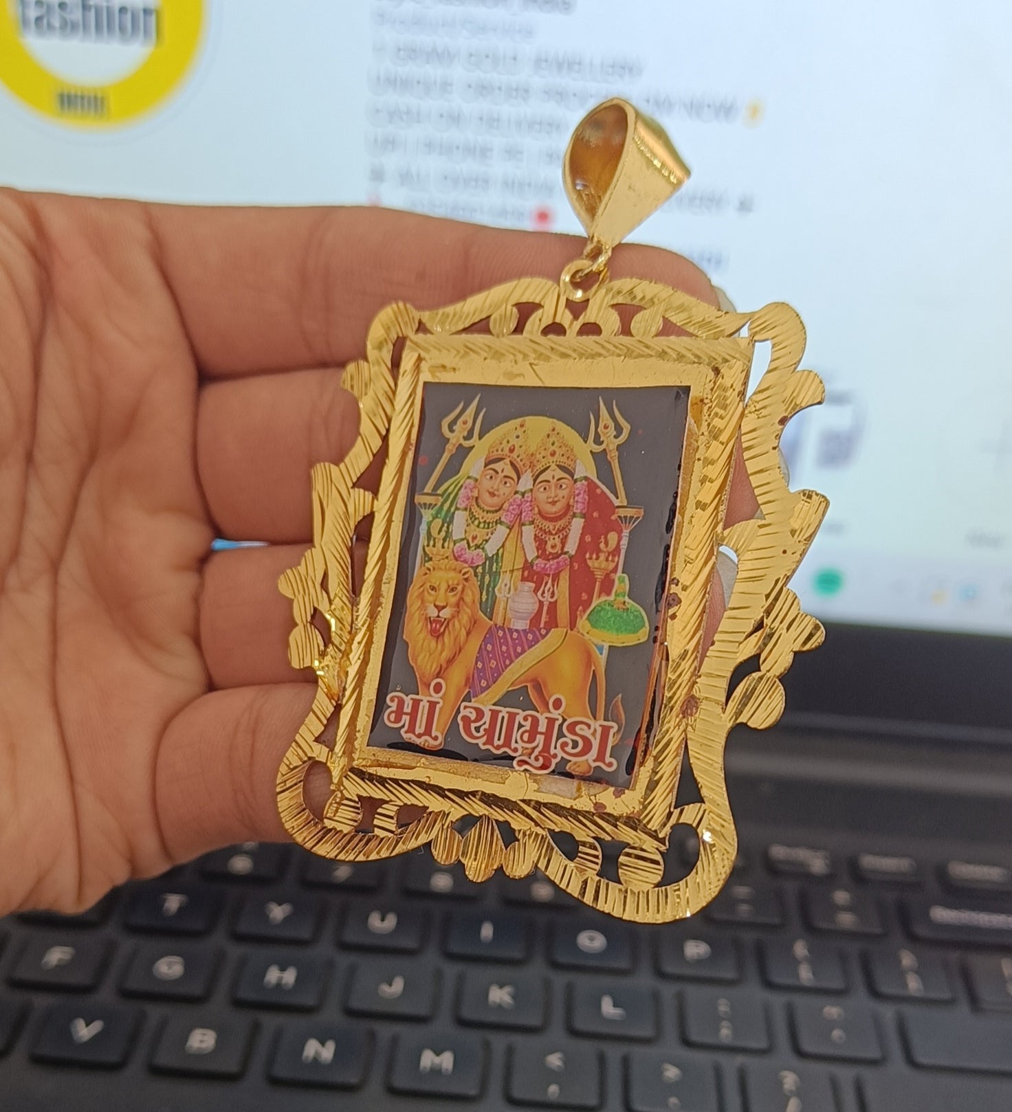 Jay Chamunda Mataji Medium High Quality Gold Plated Pendant