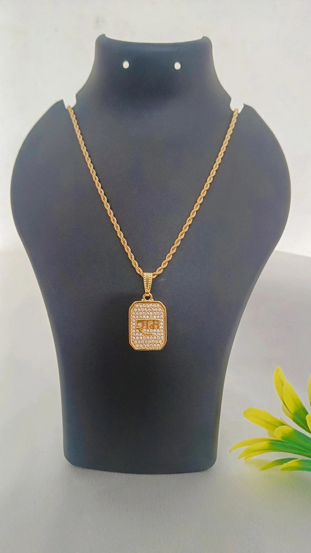 Jay Shree Ram Diamond with Gold Plated Long Time Running Pendant Set For Men