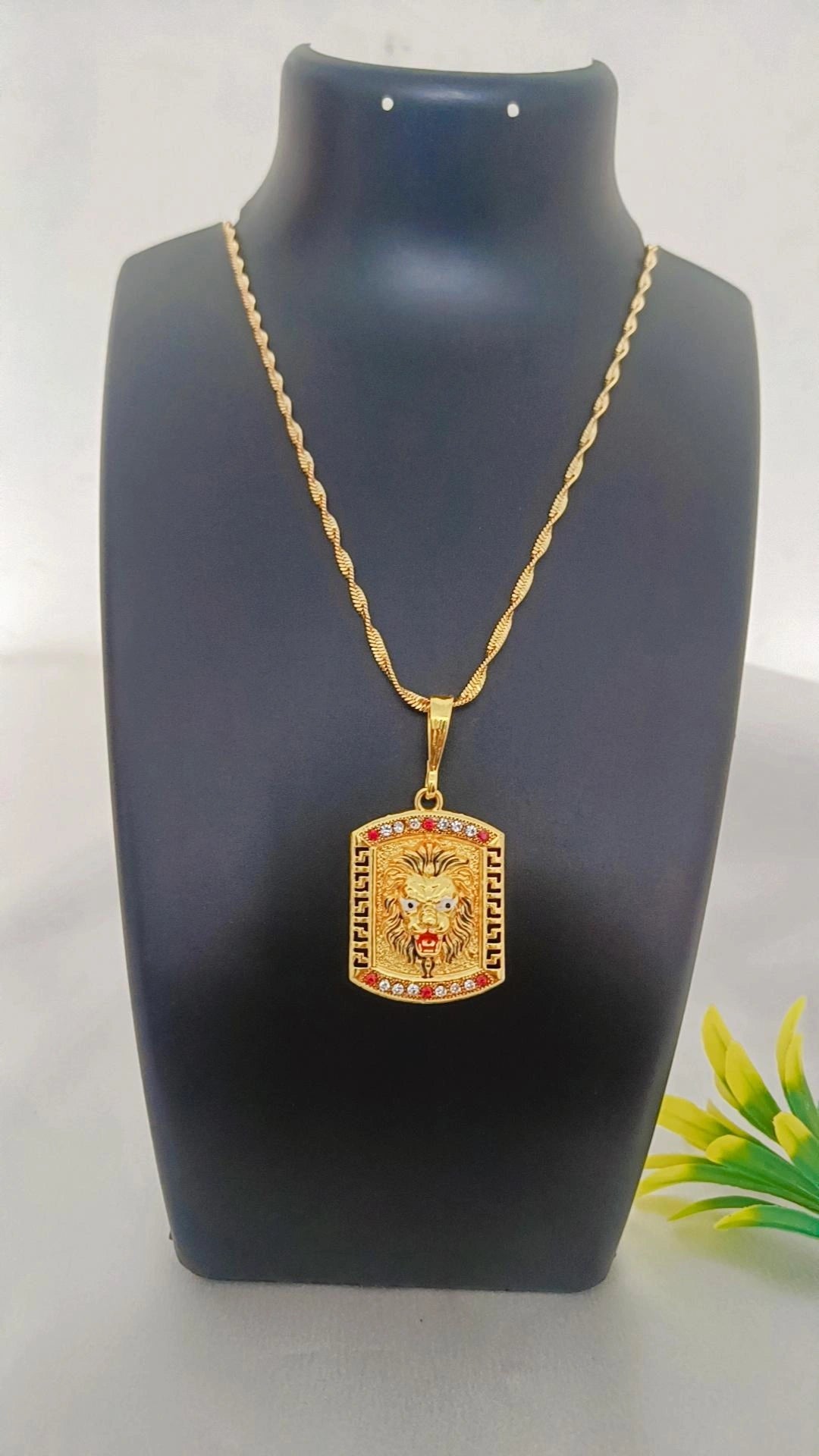 Lion Square Gold Plated Long Time Running Pendant Set For Men