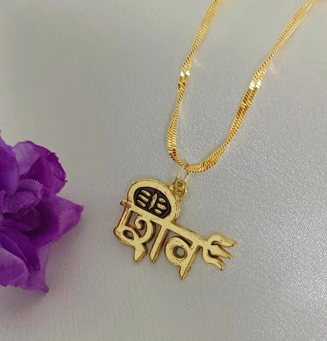 Shiv Logo Gold Plated Long Time Running Pendant Set for Men